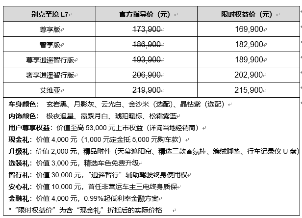 别克至境L7正式上市,限时权益价16.99万~21.59万元
