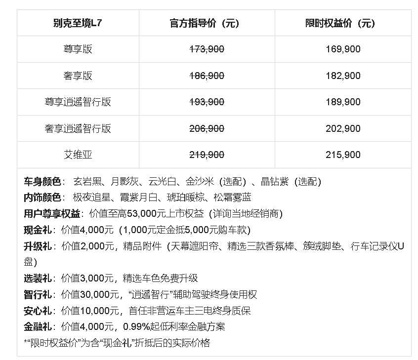 别克至境L7正式上市,限时权益价16.99万~21.59万元