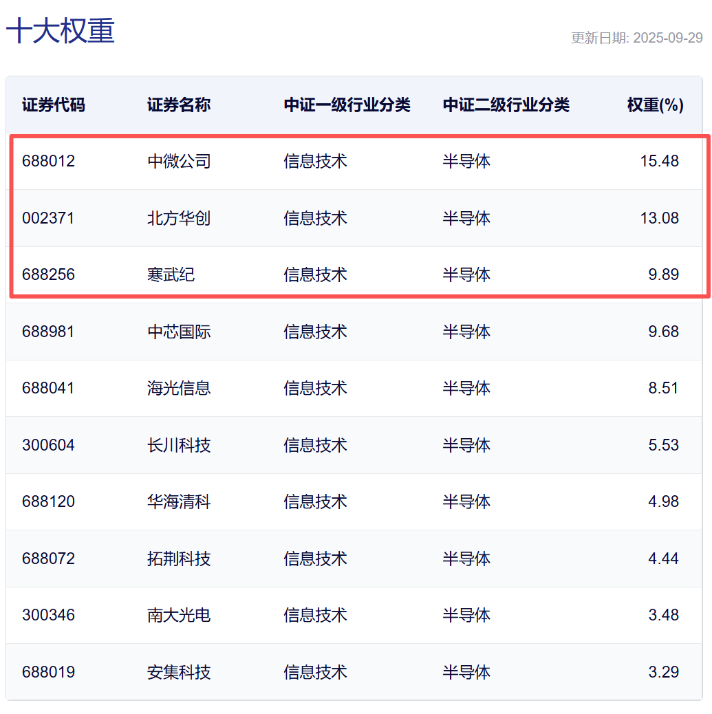 具体来看,其前三大权重股寒武纪、北方华创、中微公司,分别代表了AI算力、集成电路制造和关键工艺的国内顶尖水准。买入这个ETF,本质上是在买入一整套中国半导体产业攻坚的“核心资产组合”。