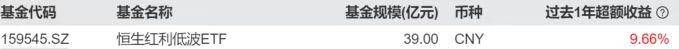 恒生红利低波ETF(159545)近1年超额收益近10%,同类第一