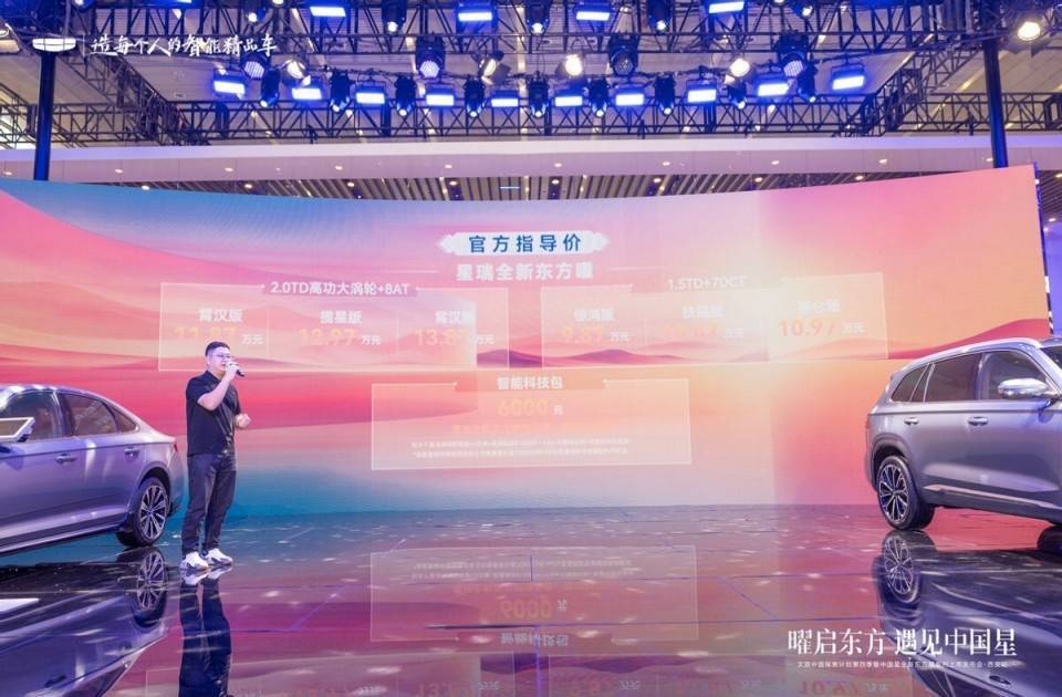 此次发布的星瑞全新东方曜共推出6款配置车型,限时上市指导价区间为9.87万元至13.87万元。星越L全新东方曜则提供3款车型,限时指导价范围为15.87万元至17.97万元。