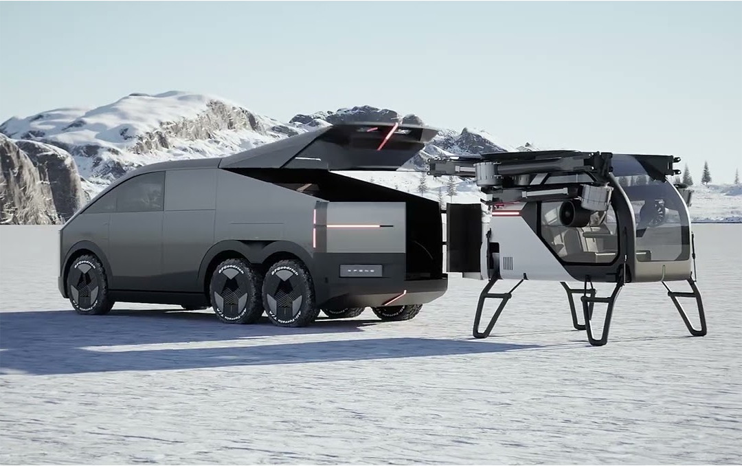 从名称即可看出小鹏汇天的主营业务,显然是飞行汽车;其中最具看点的还是分体式飞行汽车,也就是小鹏汽车的“陆地航母。”其车身主体部分采用六轮驱动,后舱室里有一辆eVTOL(电动垂直起降飞行器)。