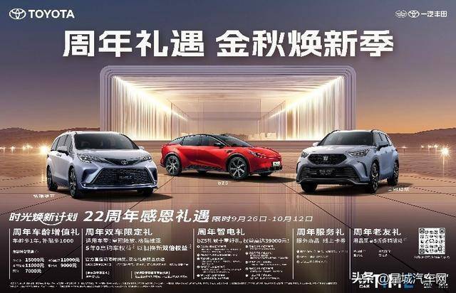 9月是一汽丰田的生日月,22年前,一汽丰田拔锚启航,开启了壮阔的发展篇章。22年间,一汽丰田累计赢得1200万用户的信赖,积累了今天应对产业变革的巨大资产;9月自然也就成了一汽丰田的“客户回馈月”。
