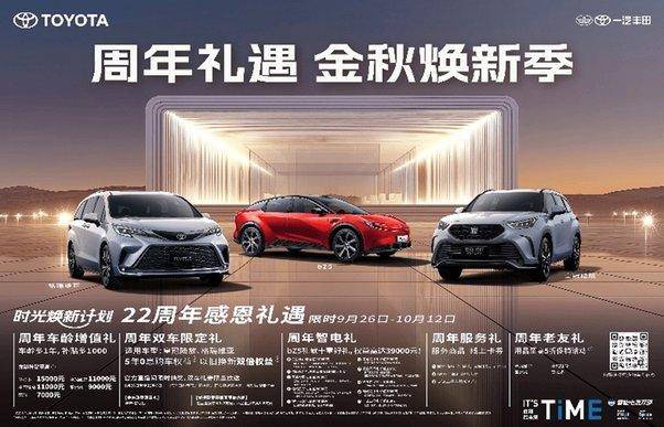 9月是一汽丰田的生日月,22年前,一汽丰田拔锚启航,开启了壮阔的发展篇章。22年间,一汽丰田累计赢得1200万用户的信赖,积累了今天应对产业变革的巨大资产;9月自然也就成了一汽丰田的“客户回馈月”。