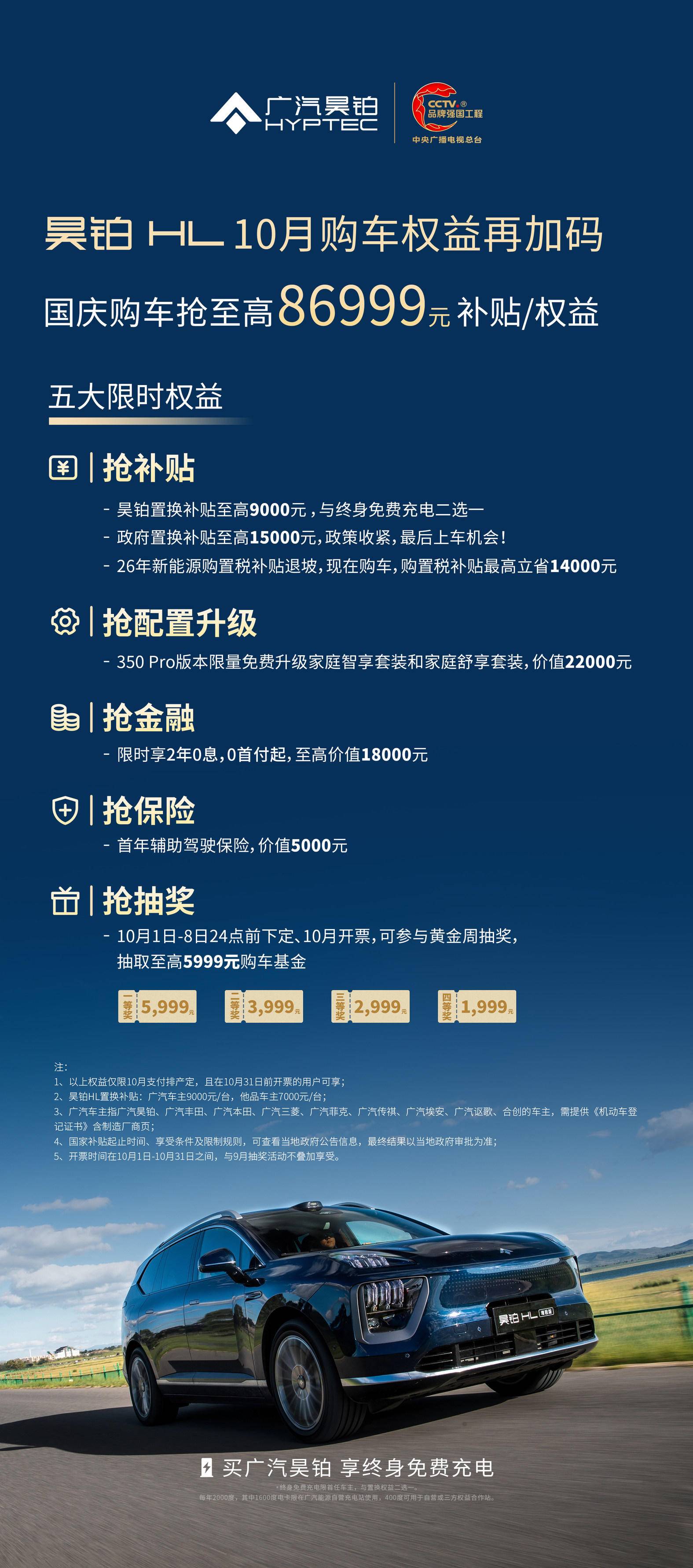 10月购车权益叠加政策红利,广汽昊铂HL增程版入手正当时!
