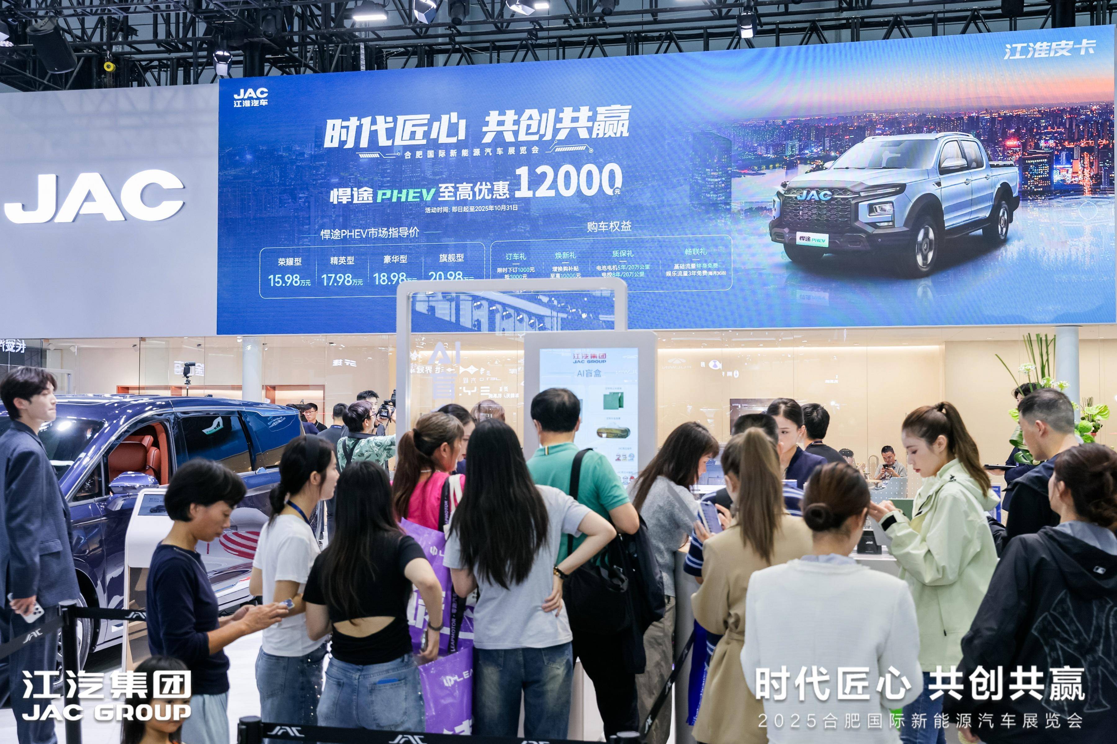 天生强悍,勇者征途!即日起至2025年10月31日,订购悍途PHEV可享多重礼遇,至高优惠12000元。2025合肥国际新能源汽车展览会火热进行中,诚邀您亲临主展馆A-3江汽集团展台,品鉴悍途PHEV的硬核实力,共赴一场智电出行的未来之约!