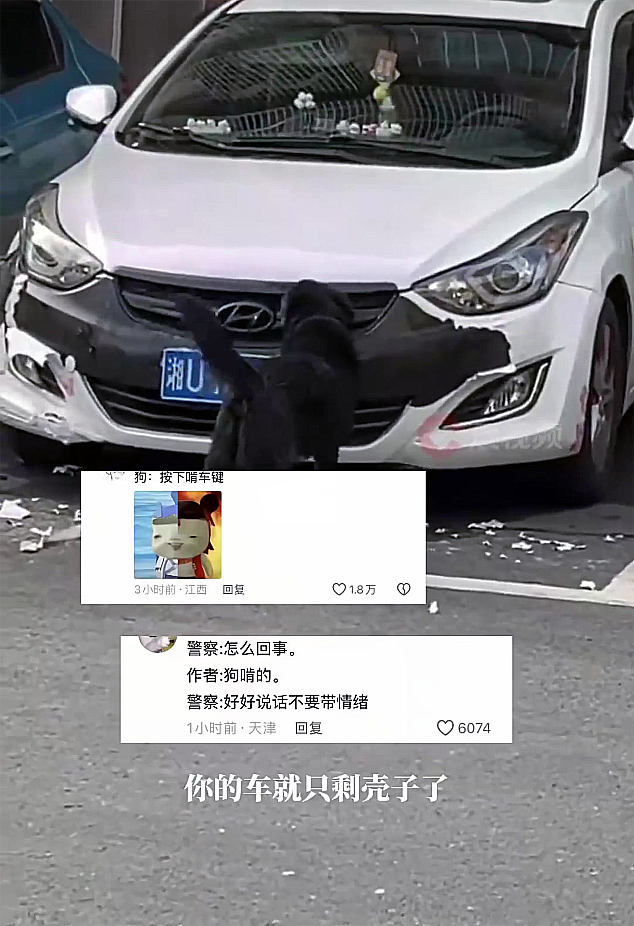 10月1日17时许,湖南吉首的马女士遇到了一件令人哭笑不得的事情。其接到一通来自陌生的好心人的电话,告知其车辆正在被狗啃,要抓紧来,要不“车都要没有了。”可以想象陌生好心人在打电话的时候得笑成什么样子,也能想象马女士的不可思议的表情,因为马女士第一反应是认为自己被骗了;但出于谨慎还是去停车场查看,而现场的情况只能说是喜感满满。