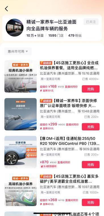 “精诚一家养车”此前已入驻抖音与京东,近一个月内GMV突破百万。电商平台的布局,意味着比亚迪“精诚一家养车”正式为所有品牌车辆提供养车服务,利用主机厂资源优势与4S级服务品质,广交四方朋友,为更多车主打造越级体验。