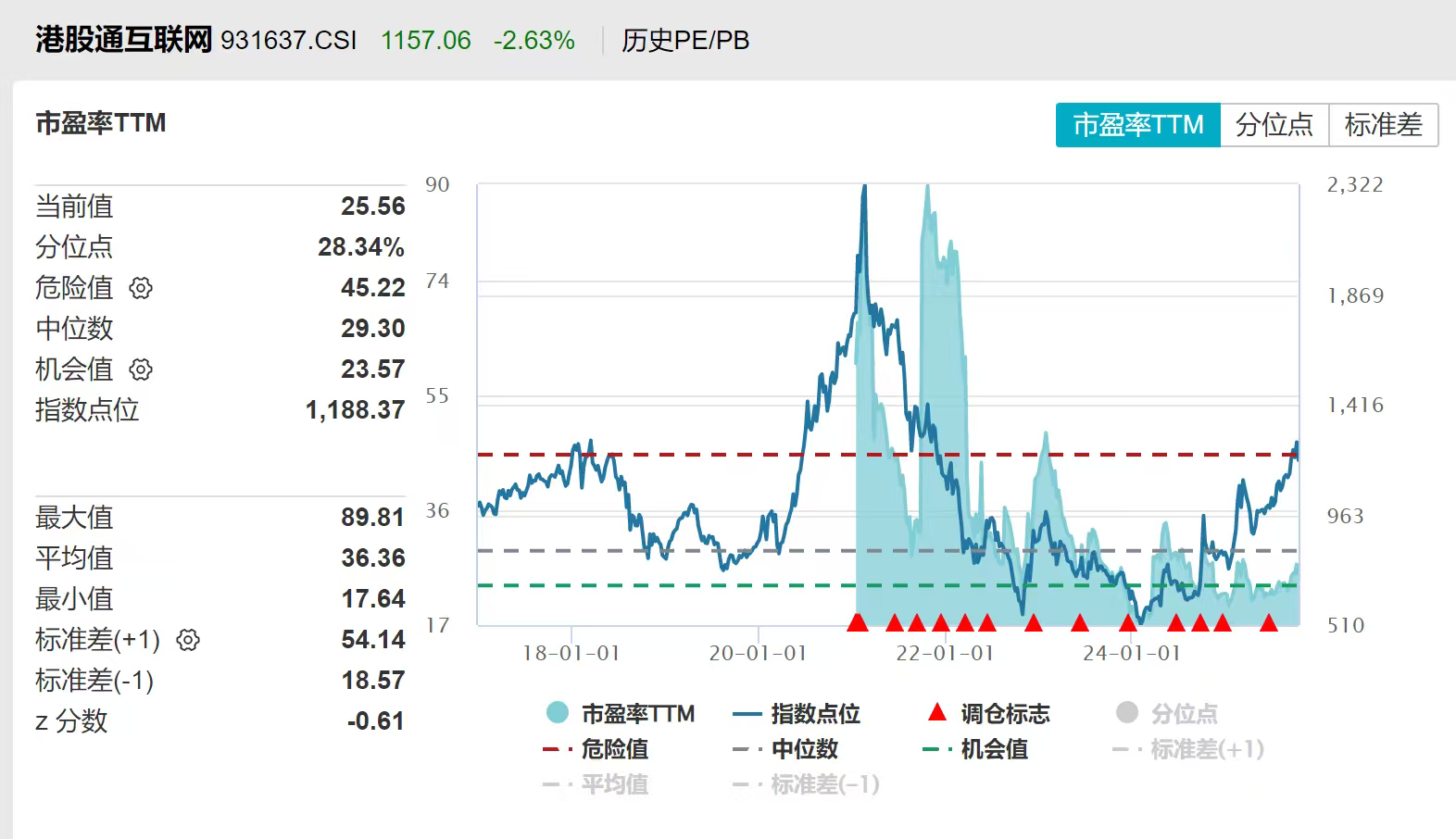 从估值层面来看,港股通互联网ETF(513040)跟踪的中证港股通互联网指数估值处于历史低位,最新市盈率(PE-TTM)仅25.56倍,处于指数成立以来28.34%的分位,即估值低于数成立以来71.66%的时间。
