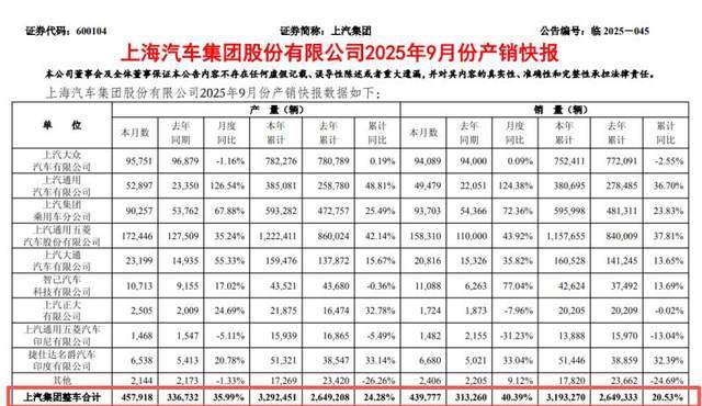 不仅如此,9月的亮眼成绩更是助力上汽集团在今年实现月度销量同比“九连涨”,增长势头持续稳固。在此态势下,上汽2025年前9个月累计批售量达319.3万辆,同比增幅20.5%;若聚焦终端零售维度,其前9月零售量更高达337.8万辆,持续稳居国内市场前列。