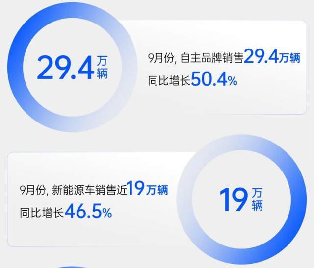 具体来看,今年9月上汽集团自主品牌销售29.4万辆,同比增长50.4%,占集团总销量近七成。1-9月上汽自主品牌累计销量达204.4万辆,同比增长29.2%,占公司销量比重达64%,较去年同期提升4.3个百分点。