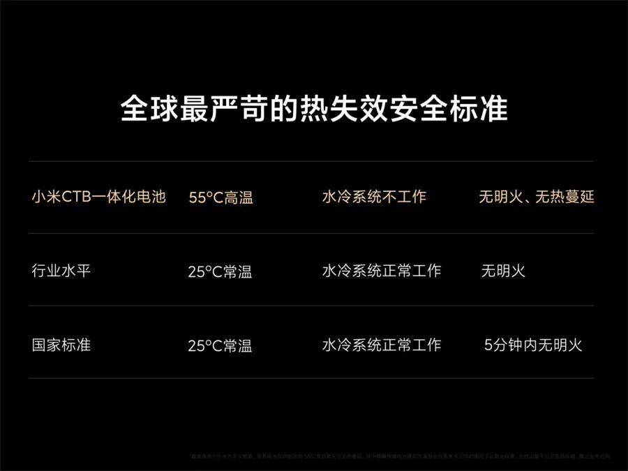 同时,雷军还曾强调小米首创的电芯倒置技术,在碰撞或热失控发生时,火焰或冲击力会向下释放,而非朝向车内乘员,为救援争取时间。为了解决电芯倒置后重力对电解液的影响,小米还与宁德时代专门研发了特殊电解液。
