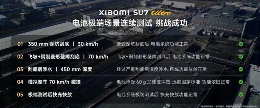 当然,新能源汽车起火这种事,有时候不能全赖车企,因为有“极端情况”。在第131集的小米汽车答网友问中,中汽研给小米SU7 Ultra做的电池极端场景测试中有个场景,与此次事故相关:“模拟碰撞模拟了车辆高速撞墙、加速度超过60g时,电池所需要承受的巨大能量冲击”。