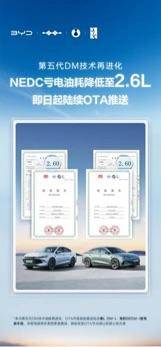 亏电油耗低至2.6L比亚迪第五代DM技术OTA来了