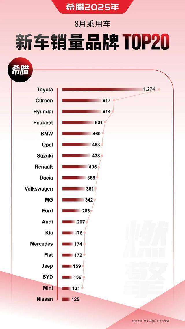 希腊2025年8月乘用车市场呈现 “丰田领跑,欧系品牌紧随,中国品牌成功破局” 的竞争格局,市场正迎来新的参与者。