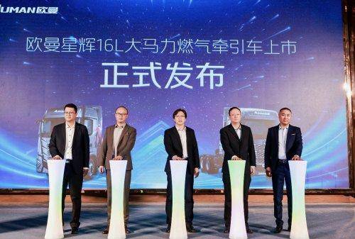 上市获订单57台!欧曼星辉16L大马力燃气牵引车银川发布