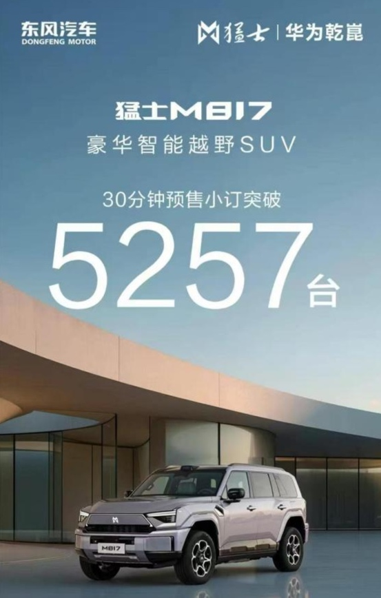 猛士M817的市场表现,已印证「技术+生态」路线的正确性。这款被称为「智能越野第一车」的车型,预售30分钟小订量突破5257台,上市5小时大定超3700台,成功跻身豪华新能源越野第一阵营。31.98-36.98 万的价格区间,既避开了传统豪华越野的高门槛,又通过全栈华为技术建立起差异化优势,精准切中市场空白。