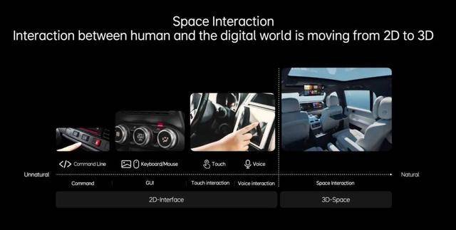 于是,最能决定用户体验的人车交互几乎成了智能座舱功能的全部。在过去的十几年里,人车交互经历了按键-带触控的二维图形界面-语音2D交互-三维空间自然交互的演变。