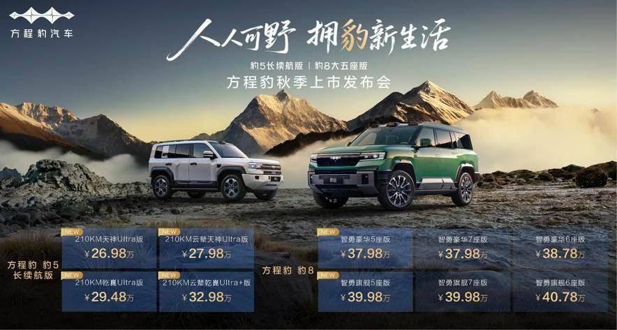 方程豹焕新!豹5长续航版本26.98万起,豹8大五座版加推上市