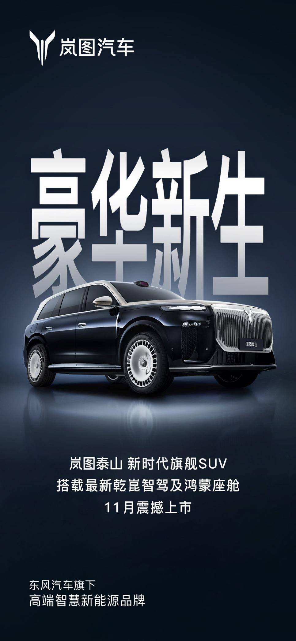 大六座SUV市场进入“战国时代”,群雄争霸愈发激烈。10月20日,据岚图官方透露,其新时代旗舰SUV岚图泰山将于11月正式上市。结合官方海报配文可以确认,岚图泰山将搭载华为最新乾崑智驾及鸿蒙座舱5.1。