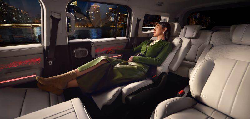其它方面,捷途纵横G700还配备有:方向盘加热/记忆、流媒体内后视镜、前排50W无线充电、前排座椅电动调节/电动记忆/加热/通风/按摩、第二排独立座椅电动调节/加热/通风/按摩、第三排座椅电动调节/靠背角度可调、后排可收折小桌板、多色车内氛围灯、智能冷暖冰箱、空气净化系统、香氛装置以及Lexicon莱斯康18喇叭音响系统(选配)等配置,驾乘舒适性与便利性直接拉满。