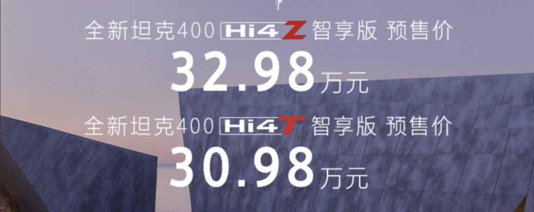 今晚(10月21日),全新坦克400(参数|询价)正式开启预售,用满配的舒适配置与突破性的智能系统,给出了硬派SUV进化的全新解法。新车共推出 2 款车型,预售价区间 30.98-32.98 万元。