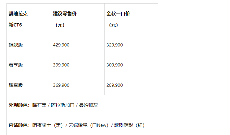 全尺寸旗舰 全款一口价28.99万起 凯迪拉克新CT6上市