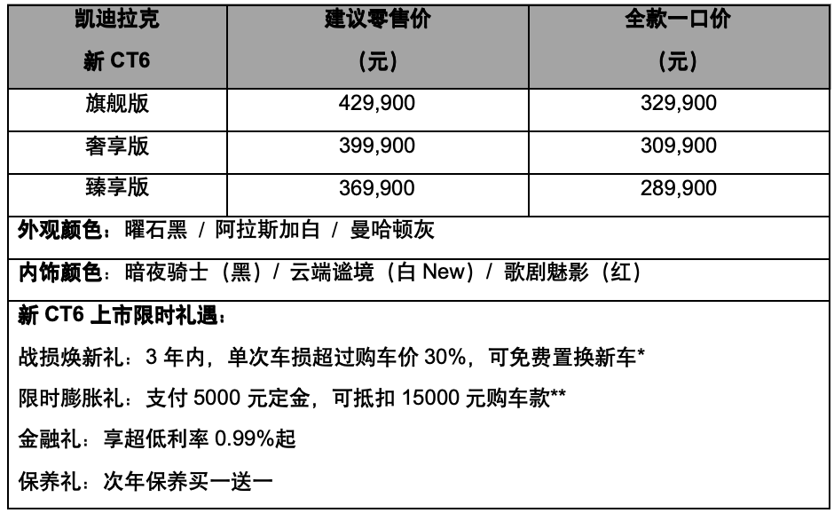 全尺寸旗舰 百万级奢享 全款一口价28.99万起 凯迪拉克新CT6上市