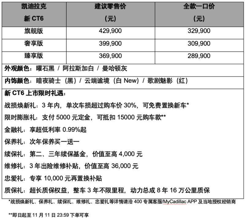 全款一口价28.99万起 凯迪拉克新CT6上市
