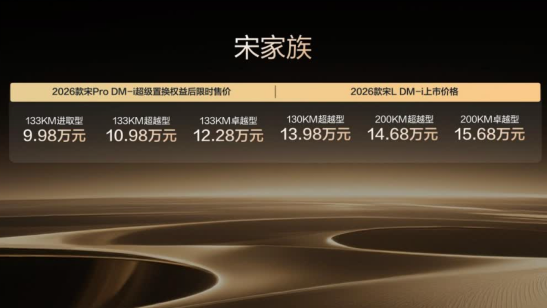 长续航低能耗!2026款宋L DM-i/宋Pro DM-i上市,限时售9.98万起