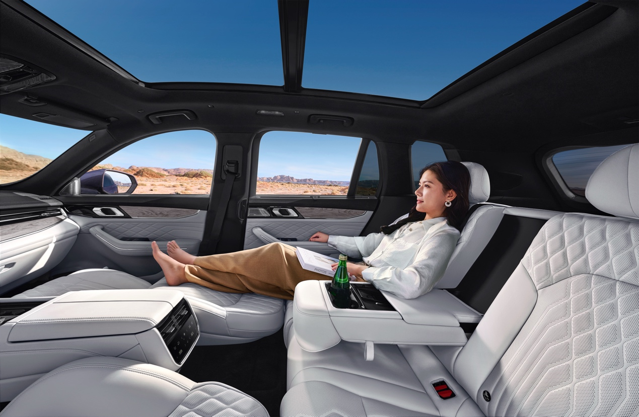 这款基于沃尔沃SPA原生豪华架构打造的旗舰SUV,精准契合中产家庭与越野爱好者需求。外观新增暗夜紫与山野绿两种车色,前者如夜幕星云深邃优雅,后者似林海生机盎然,搭配20英寸光晖轮毂与磨砂黑格栅,运动豪华格调扑面而来。车内日光米Nappa真皮内饰与木纹饰板相映,将精致感从车外延伸至座舱每个角落。