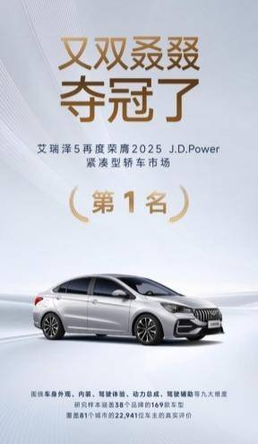 近日,在J.D. Power最新发布的中国车辆可靠性研究中,奇瑞艾瑞泽5(参数|询价)凭借过硬的全球品质,力压众多强劲对手,一举夺得紧凑型轿车排名第一。继2023年获奖之后,艾瑞泽5再度斩获这一质量领域殊荣,充分彰显其持续领先的产品实力与不断提升的品牌影响力。