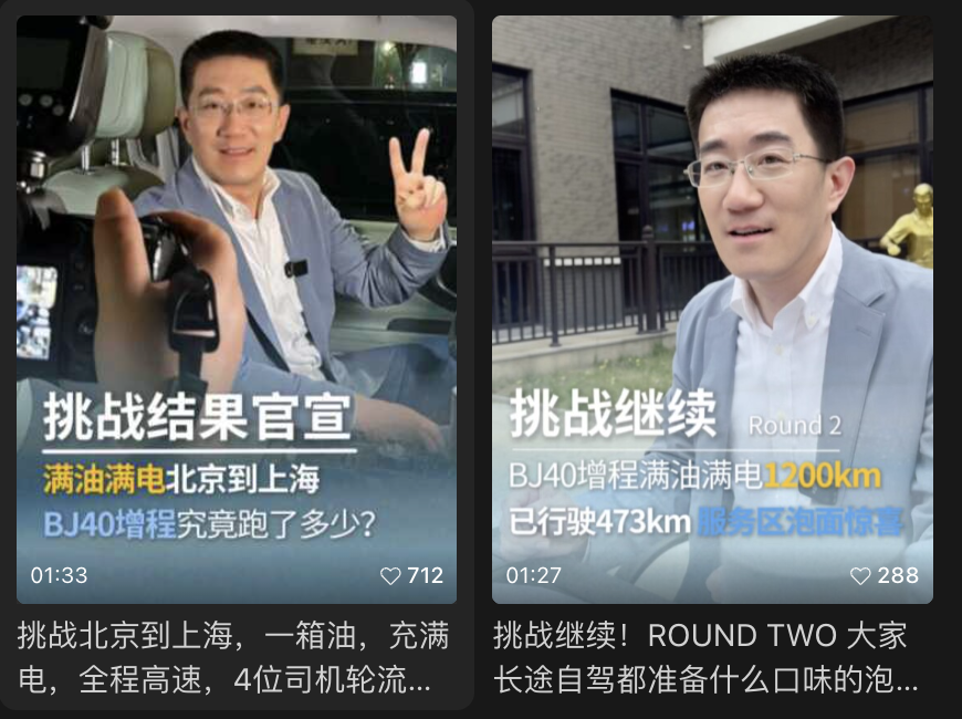 破局始于王昊的亲自下场:以“BJ40增程1200公里续航挑战”为例,他携手知名博主,从北京自驾至上海,全程直播不加油不充电,最终两人分别跑出972公里与992公里的超长续航,成功打破了“电动越野不实用”的市场偏见;面对用户反馈的“交付延迟”问题,他迅速推出“延期每日补偿100元”政策,并通过视频号实时同步生产进度,有效缓解了公众对国企效率的质疑;他不仅在评论区逐一对用户提问作出回应,更主动保留“价格偏高”“服务滞后”等负面评论,甚至以“我们确实有改进空间”等直白表述回应质疑。王昊的短视频账号已成为用户需求的“直通车”,这种“不删评、真对话”的姿态,吸引大量真爱粉。