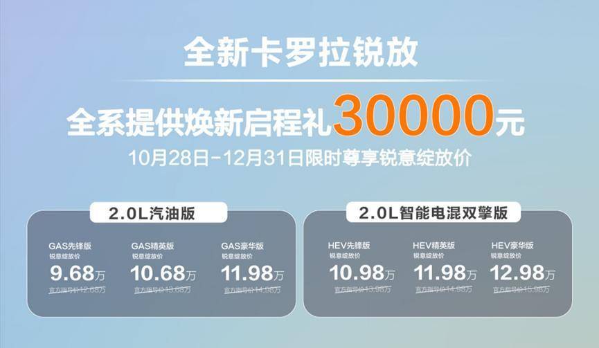 全系标配智能驾驶辅助系统,全新卡罗拉锐放上市,限时9.68万元起