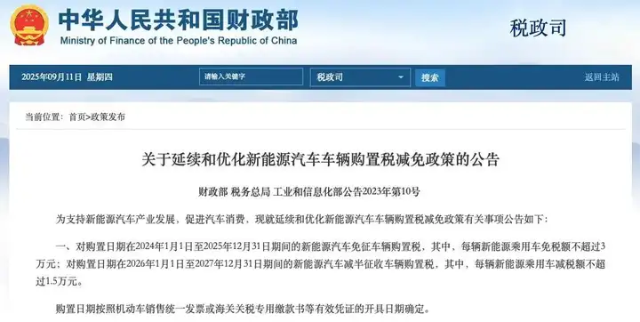 除置换补贴外,2025年也是新能源汽车免征车辆购置税的“收官之年”。2025年12月31日前购买新能源汽车,仍可享受全额免征购置税福利,进入2026年,补贴政策将迎来减半调整。