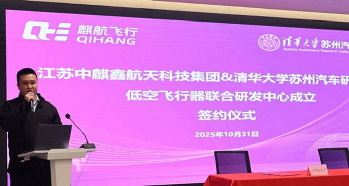 校地企携手“起飞”!10月31日,江苏中麒鑫航天科技集团有限公司与清华大学苏州汽车研究院共同签署协议,正式成立低空飞行器联合研发中心。这一合作标志着低空经济领域迈入了“产学研”深度融合的生动实践,更是推动核心技术突破,加速产业升级的关键一步。