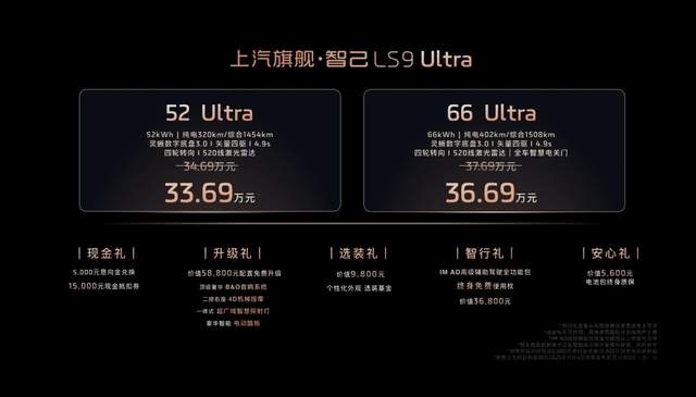 11月4日,上汽旗舰·智己LS9全球首发并正式开启预售。新车重磅首发两个超级增程版本,全系皆Ultra:52 Ultra版,预售权益价33.69万元;66 Ultra版,预售权益价36.69万元。作为汇聚上汽集团70年造车底蕴,集全球顶尖技术打造的旗舰之作,智己LS9以“两大跨代际硬核科技+两大智能时代最强创新”的绝对实力,一举颠覆30万级大六座SUV市场格局,正式宣告9系新王诞生!