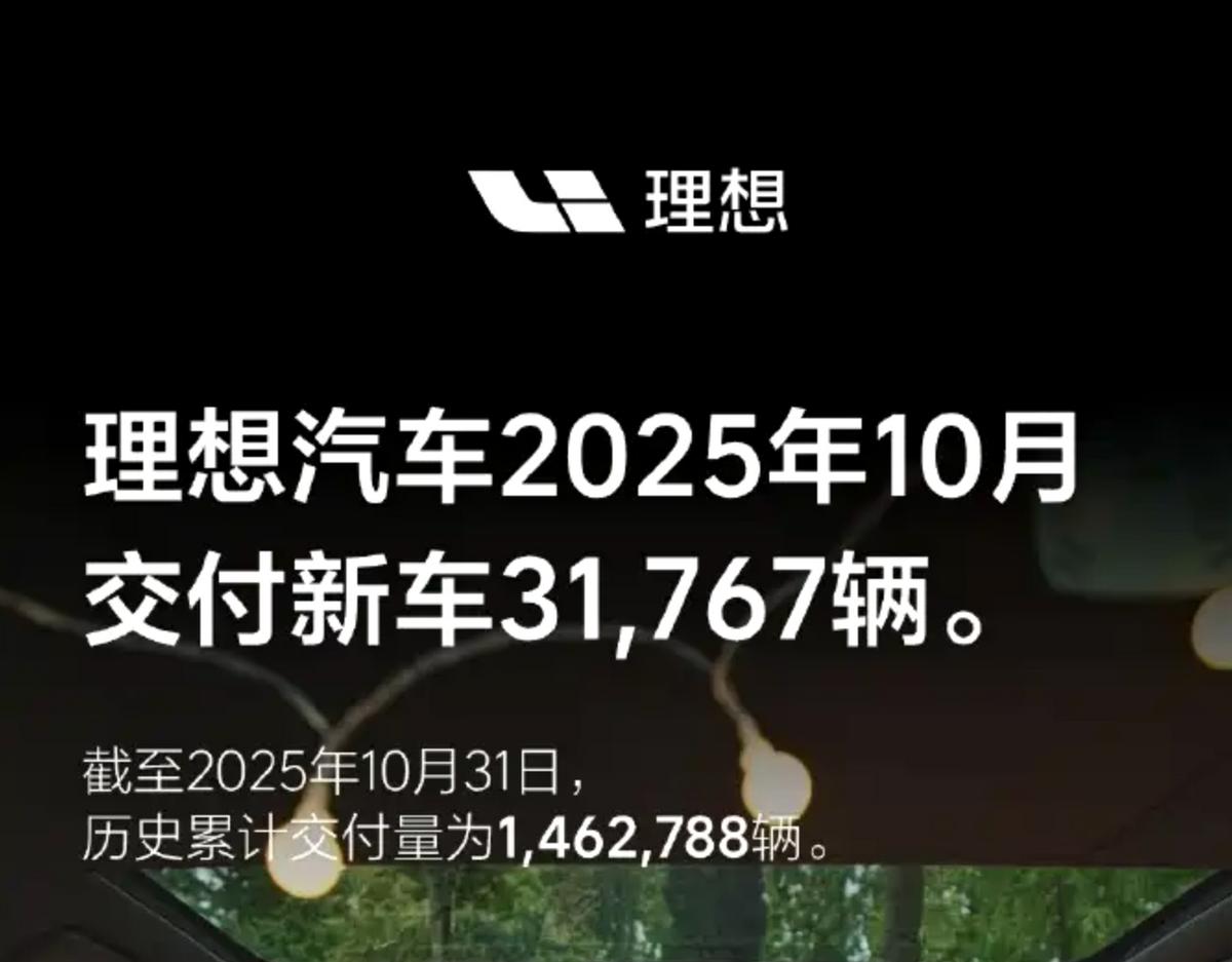 数据显示,在刚过去的10月份,零跑以70289辆的月交付量稳居榜首,首次突破了7万辆大关;鸿蒙智行紧随其后,月交付量超6万辆。至于理想,10月交付31767辆,同比下滑38.2%,环比下降6.4%,成为头部阵营中唯一出现“双降”的品牌。