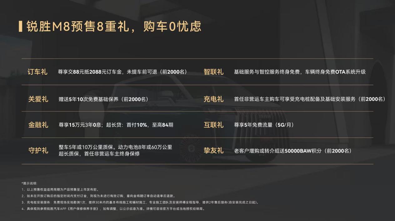 锐胜M8大型MPV正式预售 16.98万起,三排都是商务舱