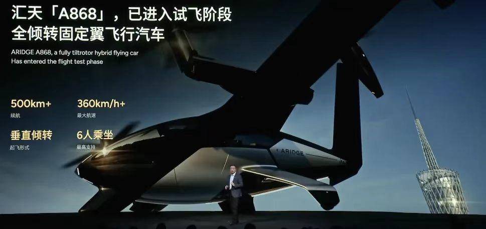 最后提一下小鹏的“汇天A868飞行汽车”,这款飞行汽车续航超过500公里,最大航速超360km/h,最高支持6人乘坐,采用垂直倾转的起飞形式,具备执行城市间航线的潜力。何小鹏透露,汇天的另一款产品陆地航母已经进入量产前夜,目前全球订单累计突破7000台,创下行业纪录。