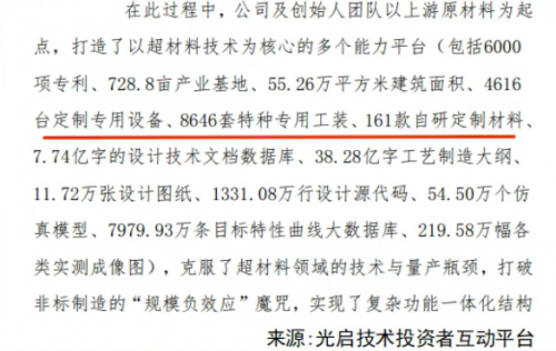 更厉害的是,光启技术连生产设备都自己定制研发,累计设计了4616台专用设备、8646套特种工装和161款自研材料。这意味着,它的整个生产体系都是独一无二、无法复制的,实现了全面的国产化替代。