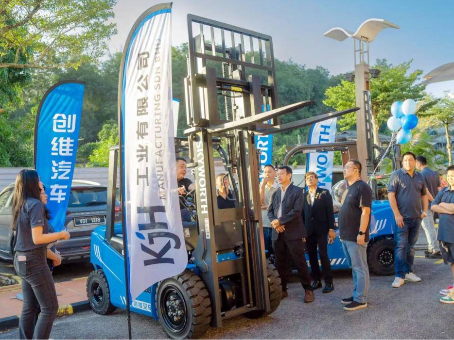 而在马来西亚,由当地经销商KJH MANUFACTURING SDN BHD在柔佛州主办了创维叉车产品介绍会。作为开沃集团新能源战略的重要板块,创维叉车自创立以来始终以“技术创新驱动绿色物流”为使命,专注于新能源叉车的性能提升、智能化升级与环保特性优化。创维叉车专利产品T系列其独创的全自动上下车设计彻底解决了传统随车叉车依赖人工辅助的行业痛点,特别适用于跨境物流车的转场作业。同台亮相的B系列平衡重式叉车,则依托“油电同平台开发”的技术优势,通过优化三电系统匹配与多档位功率控制,实现不同工况下的精准供能,成为中小物流企业的性价比之选。