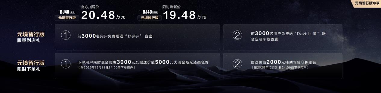 限时焕新价19.48万元,BJ40增程元境智行版正式上市!