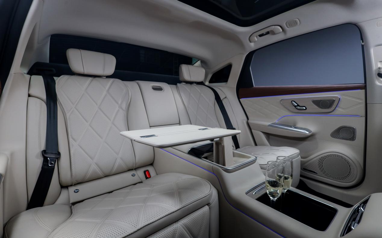依托"532"C级尺寸优势(车长超5米、轴距3米、车宽近2米),四座尊享版打造出超越级别的"C级尺寸,D级空间",3000mm超长轴距与1540mm后排横向空间,确保每位乘员都能获得舒展坐姿。二排豪华座椅采用迈巴赫同款双绗缝立体菱形纹路,13层座椅结构搭配OEKO TEX环保认证的婴幼儿级用料,气味性达到3.0级,501mm靠背支撑大幅降低肩部悬空感,坐垫较普通车型增大20%以上,配合电动四向腿托与103mm超大延伸行程,带来极致舒适体验。座椅还配备满配通风/加热/按摩功能,一键开启商务尊享模式后,前排座椅自动前移,后排座椅腿托伸展,瞬间变身移动休憩舱。