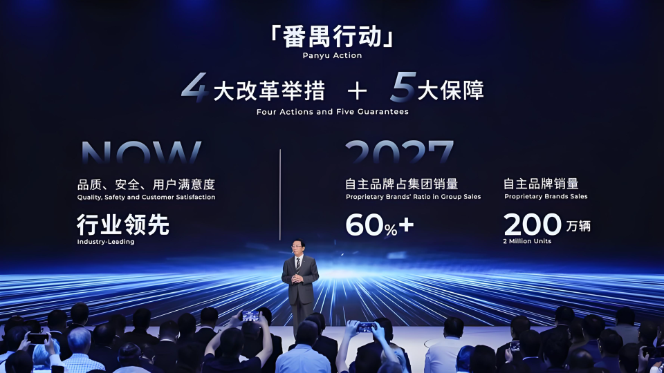 "番禺行动"目标到2027年实现自主品牌销量占集团总销量的60%以上,挑战自主品牌销量突破200万辆。该行动聚焦品牌重塑、产品创新、技术升级和国际市场拓展。