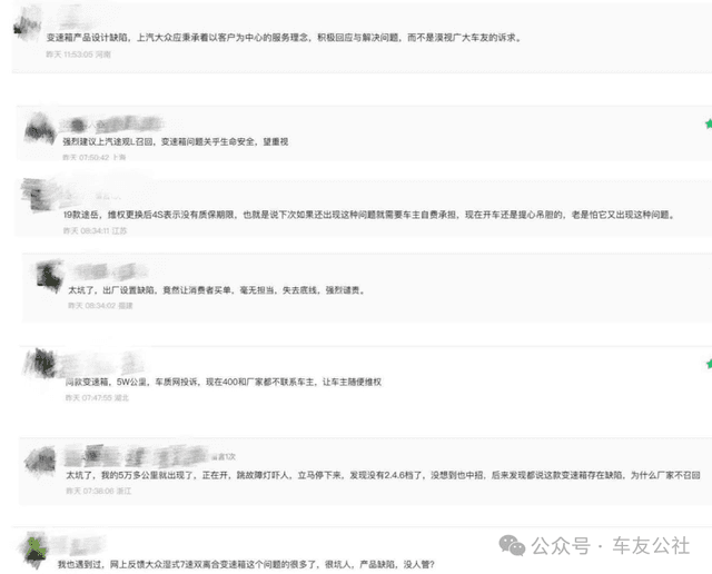车友公社了解到,张先生的担忧并非个例。多位车主表示,变速箱作为核心部件,其稳定性直接关系到行车安全,而上汽大众目前的处理方式既未彻底解决现有故障,也未对后续风险提供保障,让车主们难以安心用车。