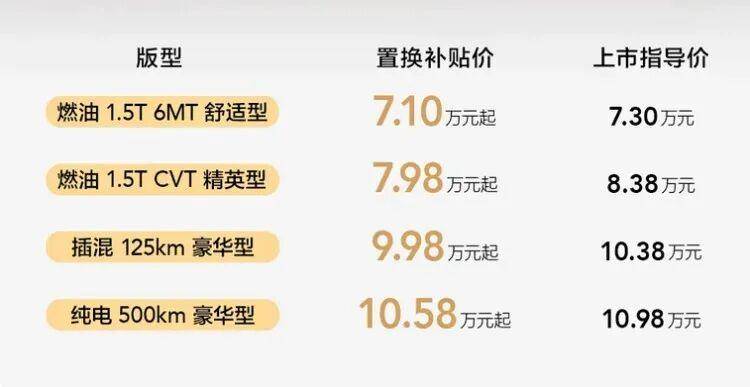 插混版本采用1.5L发动机+电机组合,拥有125公里的CLTC纯电续航以及1100km的综合续航;纯电动版车型电机最大功率为100kW,并搭载60kWh神炼电池,CLTC纯电续航500km。