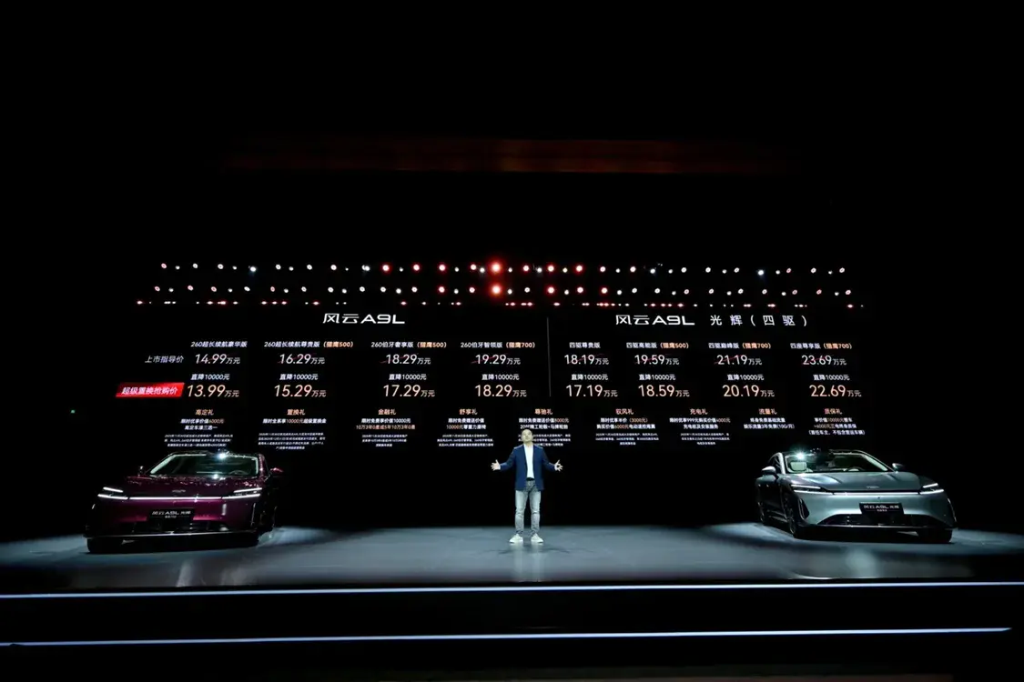 11月15日,"进化"风云A9(参数|询价)L光辉(四驱)正式上市,共推出四款车型,其中四驱尊贵版售价17.19万、四驱高能版(猎鹰(参数|询价)500)售价18.59万、四驱巅峰版(猎鹰700)售价20.19万、 四驱尊享版(猎鹰700)售价22.69万。并同步推出"九大购车权益",涵盖高定、置换、金融、舒享、尊驰、驭风、充电、流量、质保多重礼遇。