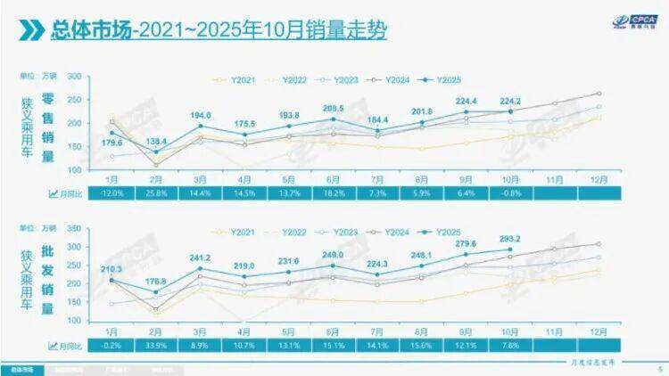乘联会2025年10月《全国乘用车市场分析》如期而至,在“金九银十”的助力下,10月汽车市场一片大好,全国共卖出乘用车224.2万台,今年累计卖出新车1925万台,同比增长7.9%。