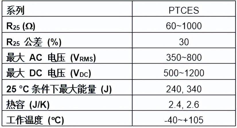 日前发布的PTC热敏电阻的能量吸收能力比竞品器件高260 %,设计人员可减少电路中使用的元件数量,从而节省基板空间,降低总成本。此外,PTCES系列器件的最大电压处理能力比竞品器件高20 %,可满足更广泛的设计要求。